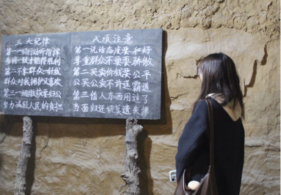 追寻边区足迹,志愿者们来到“常大娘之家”。简朴的木制纺织工具、斑驳的铁制水壶,瞬间将人拉回常大娘传送情报、照料伤员的岁月。约60米的仿建地道中,志愿者们参观了工作处、会议室、枪支弹药存放处……逼真的场景无声诉说着当年不屈的抗争,让红色历史愈发鲜活可感。