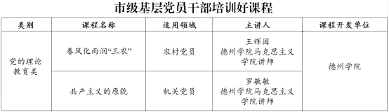 近日,德州市委组织部公布了省市基层党员干部培训好课程名单,宝盈bbin直营平台王辉园老师申报的《春风化雨润“三农”》、罗敏敏老师申报的《共产主义的原貌》获评市级基层党员干部培训好课程。